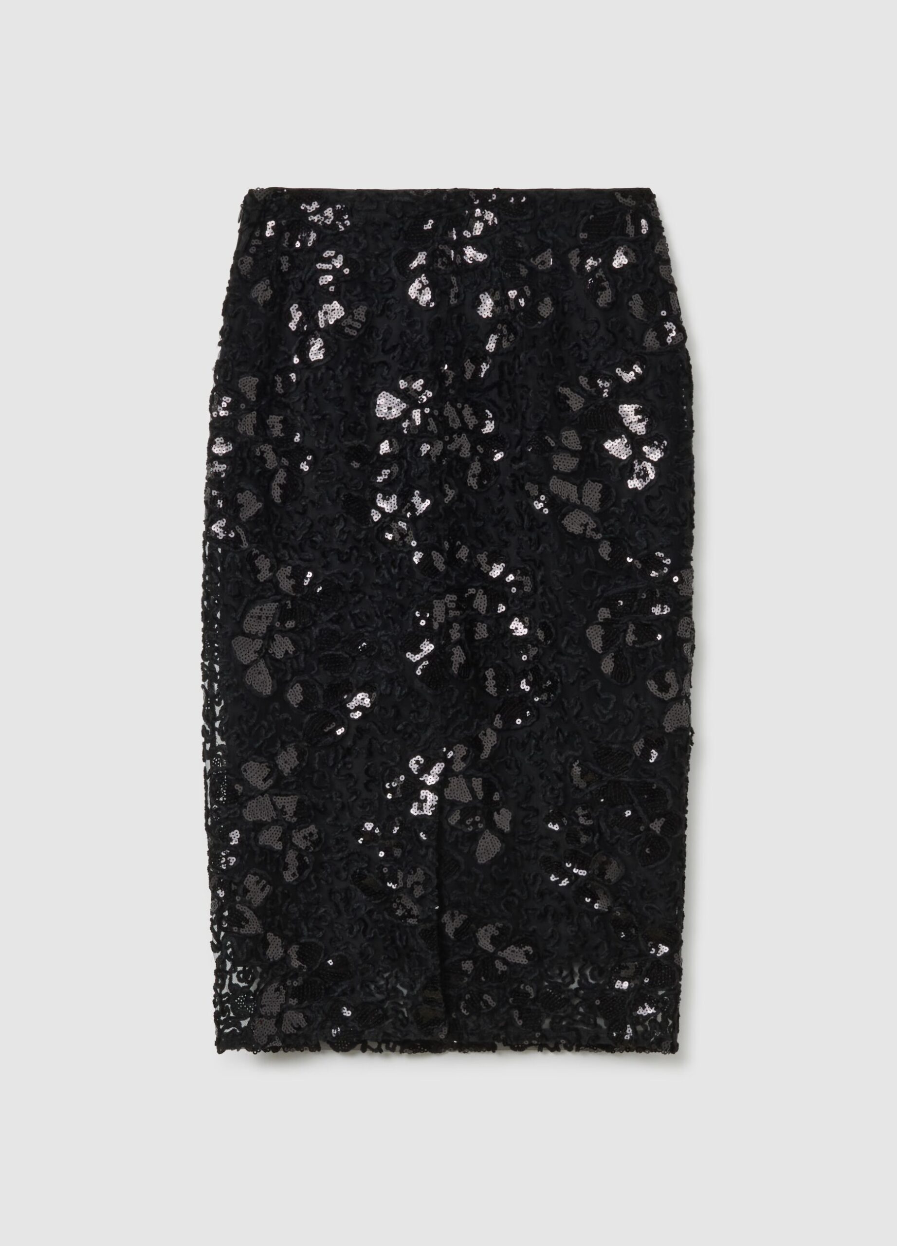 STEFANEL Skirt with floral sequin appliques Black