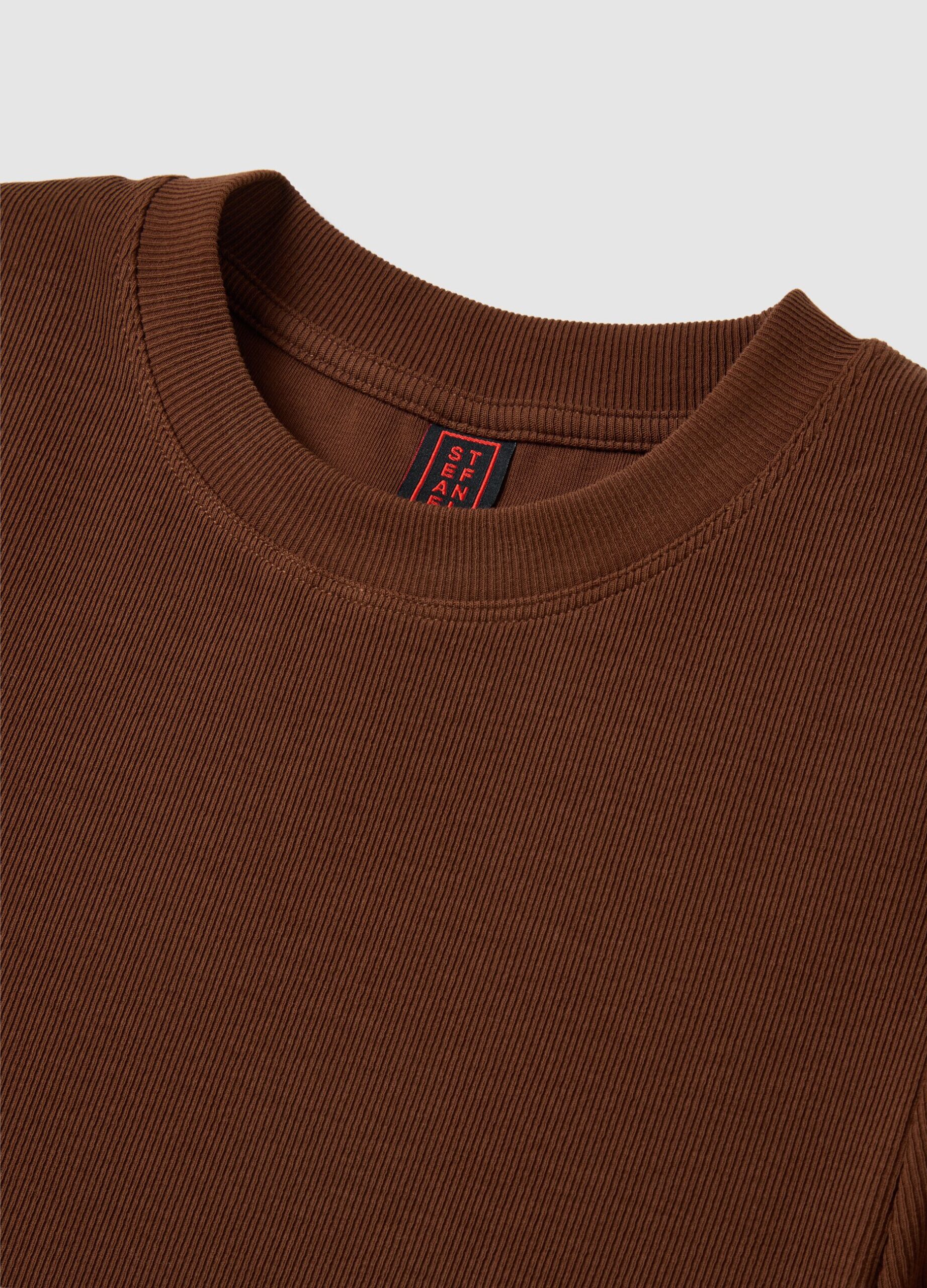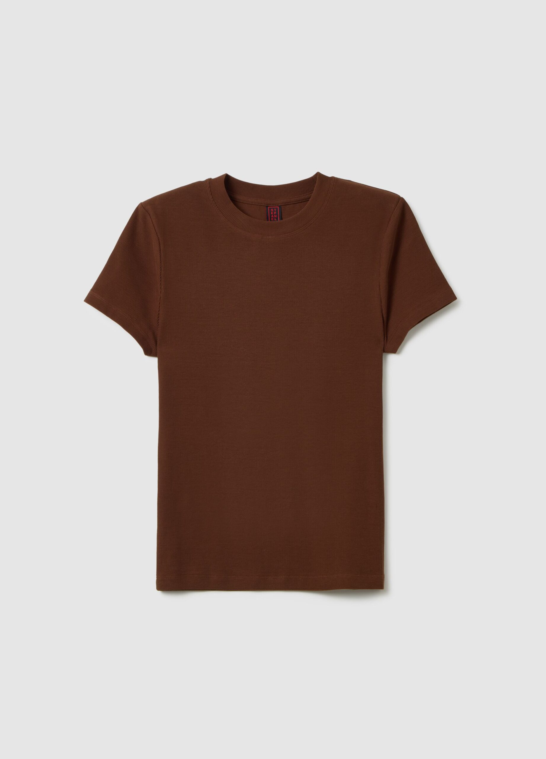 STEFANEL Slim fit brown stretch cotton T-shirt