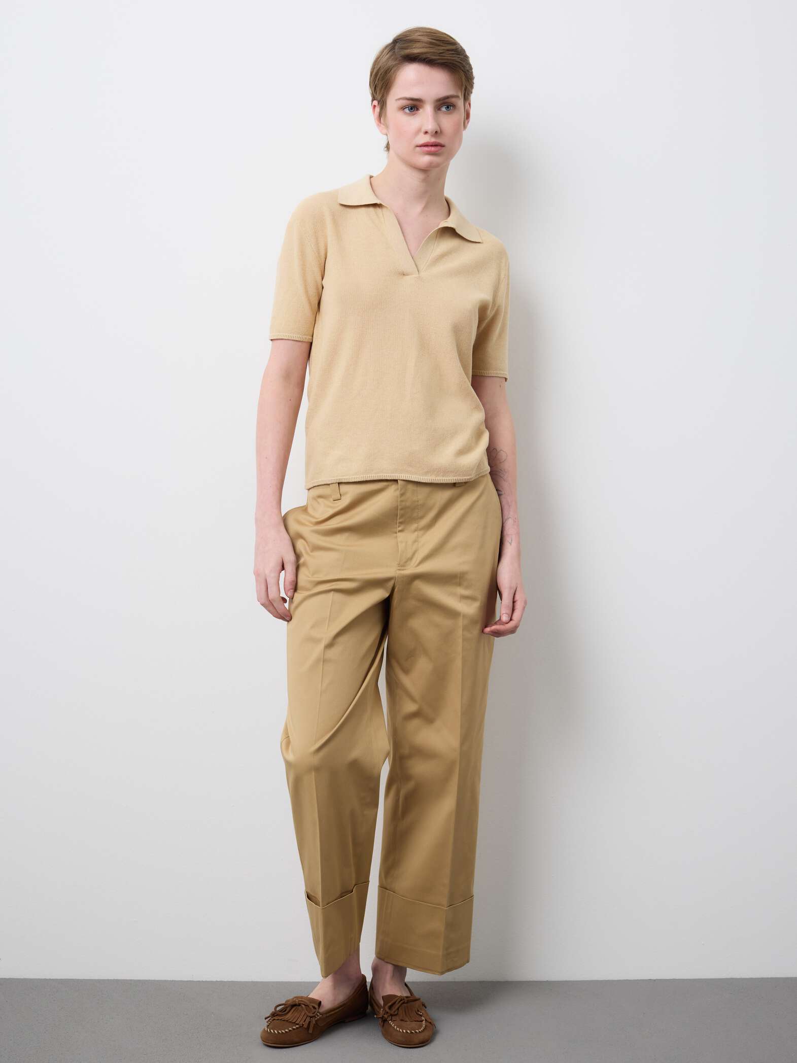 Ανακαλύψτε αυτά τα μπεζ παντελόνια σε ίσια γραμμή, σχεδιασμένα για γυναίκες, με κλασικό σχεδιασμό και κατασκευασμένα από ελαστικό βαμβάκι.