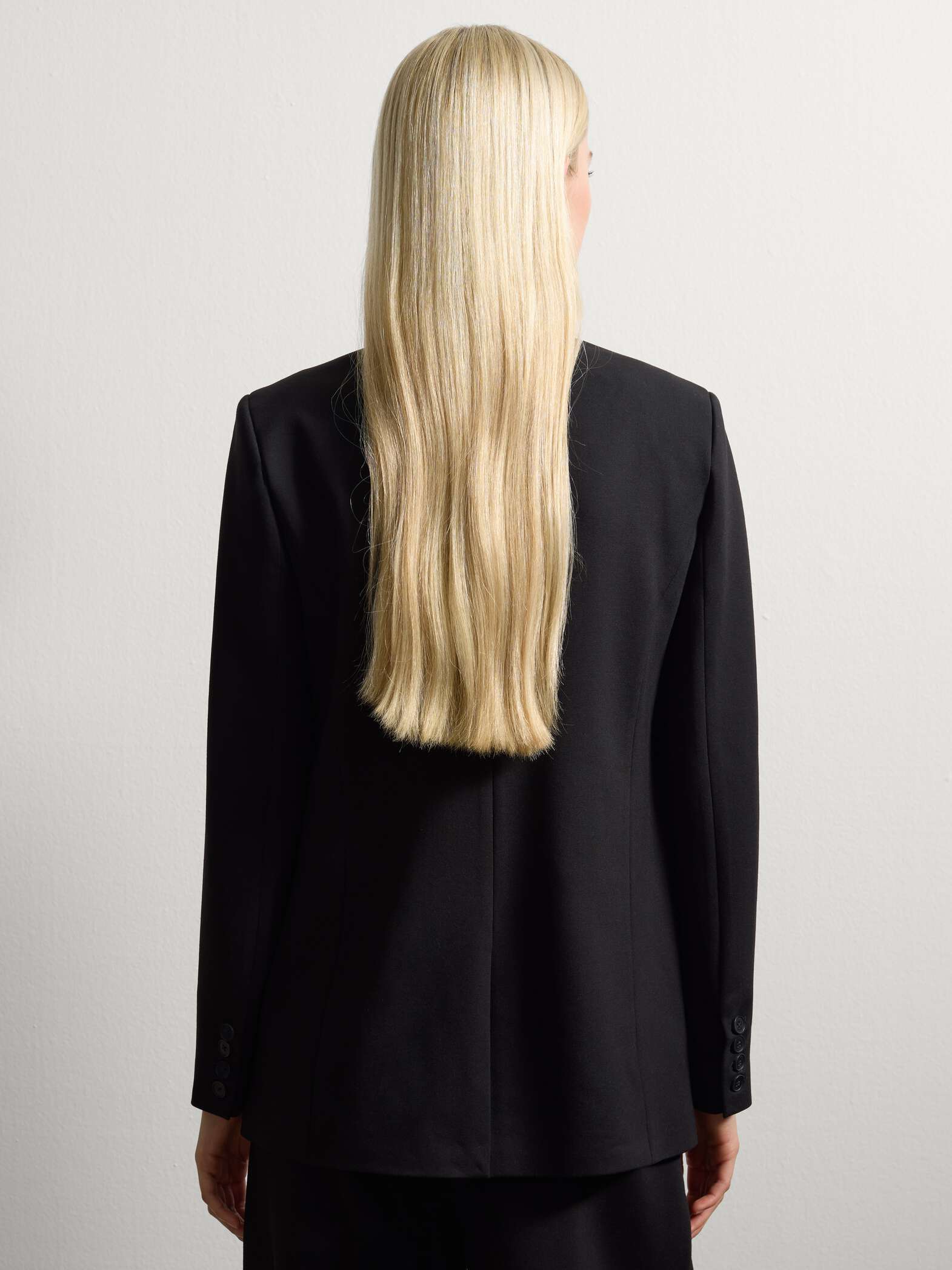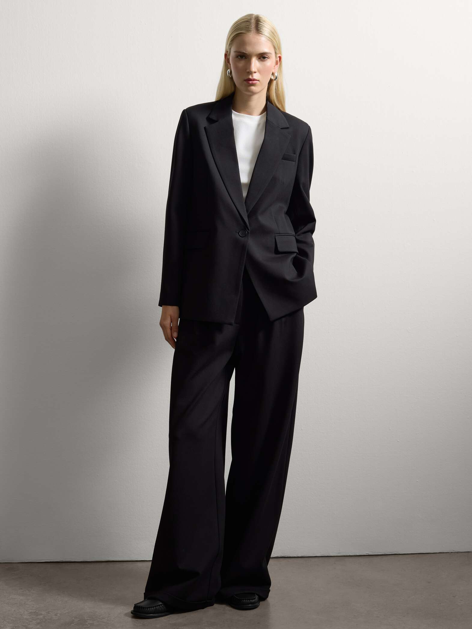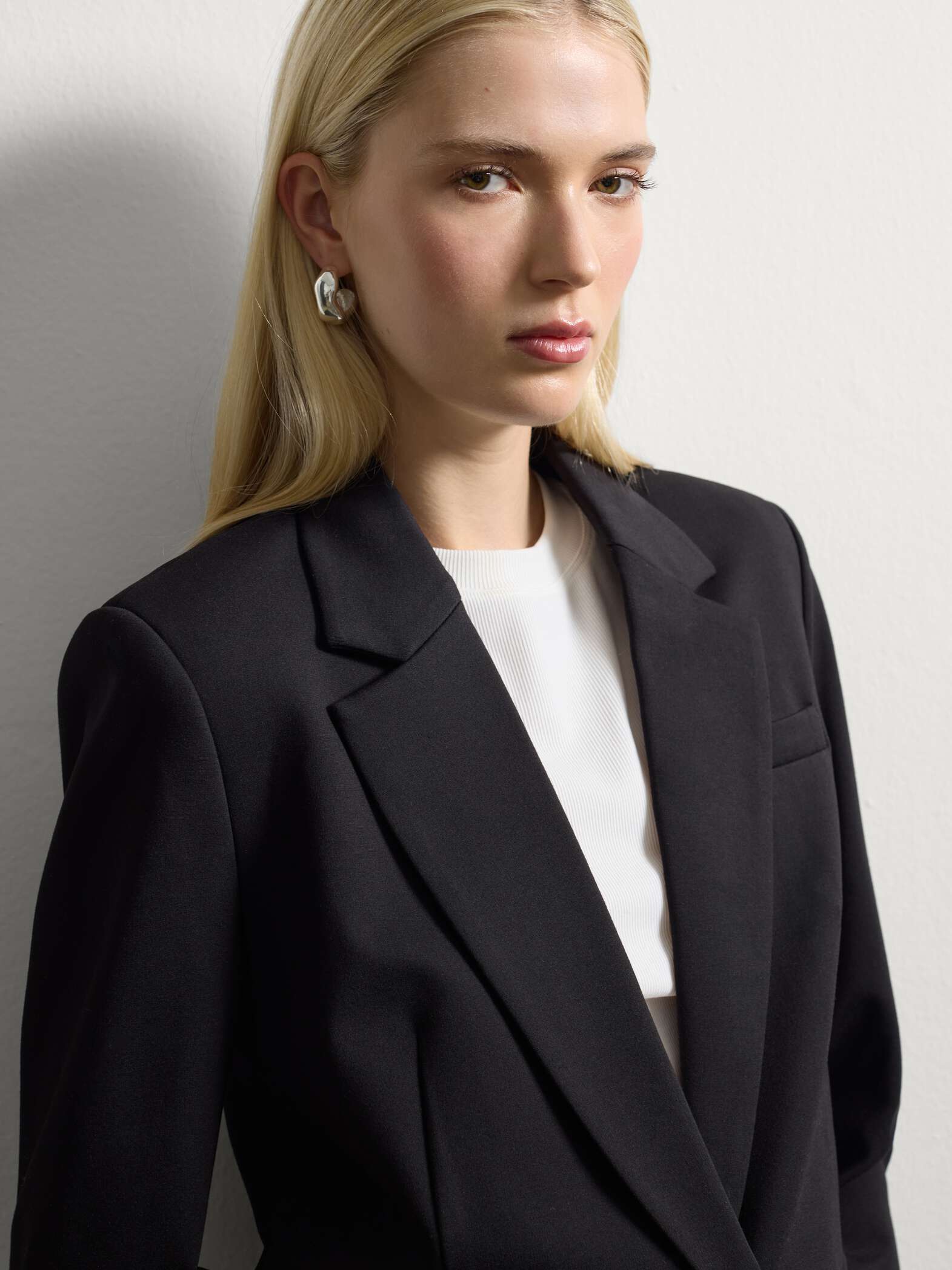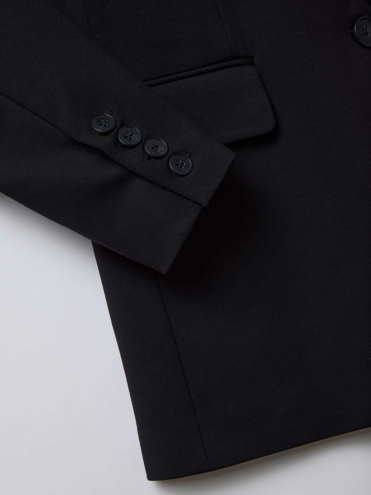 Το μαύρο σακάκι κανονικής κοπής με κλασική σιλουέτα είναι κατασκευασμένο από ελαστικό ύφασμα για άνεση και στυλ.