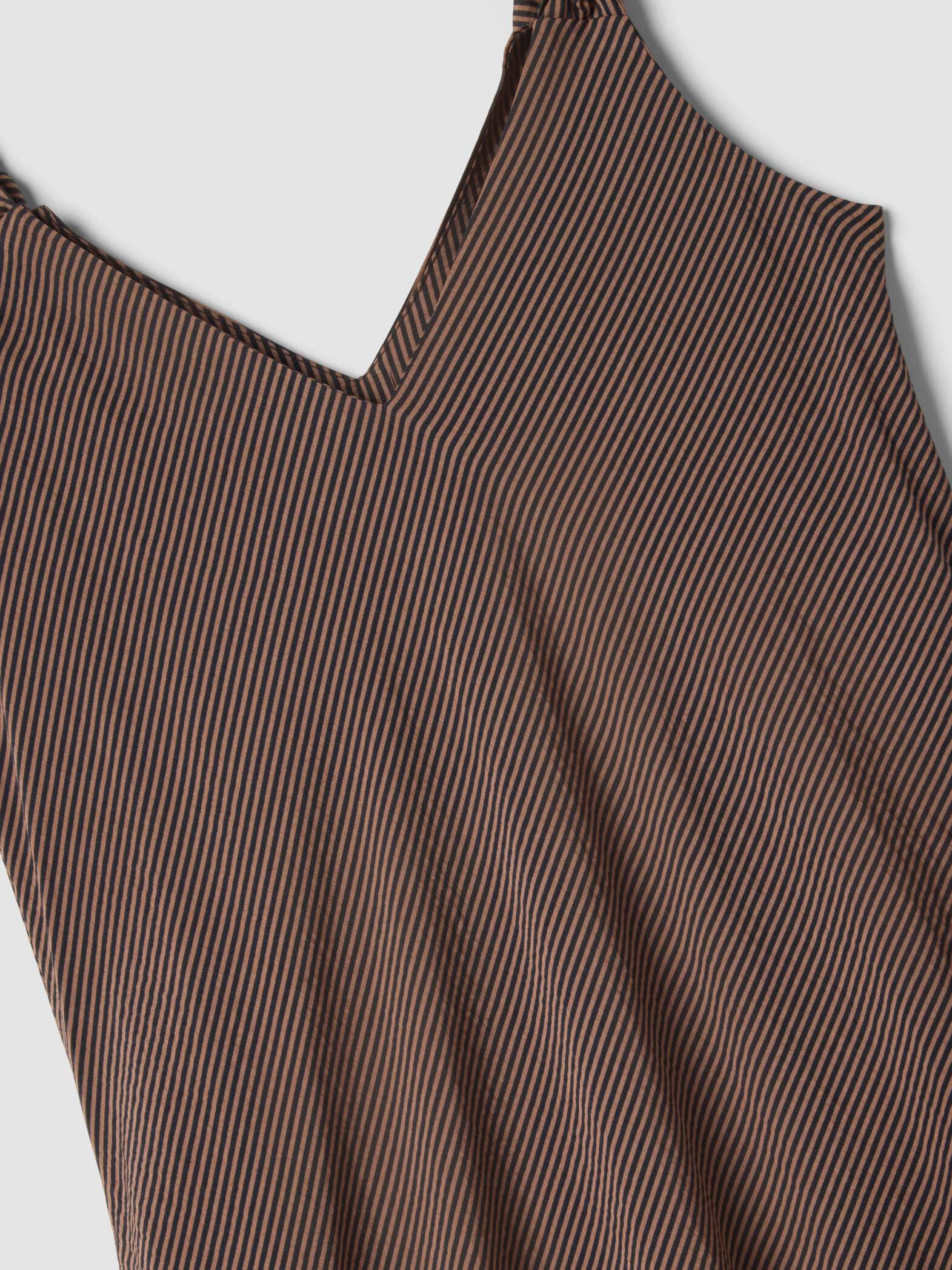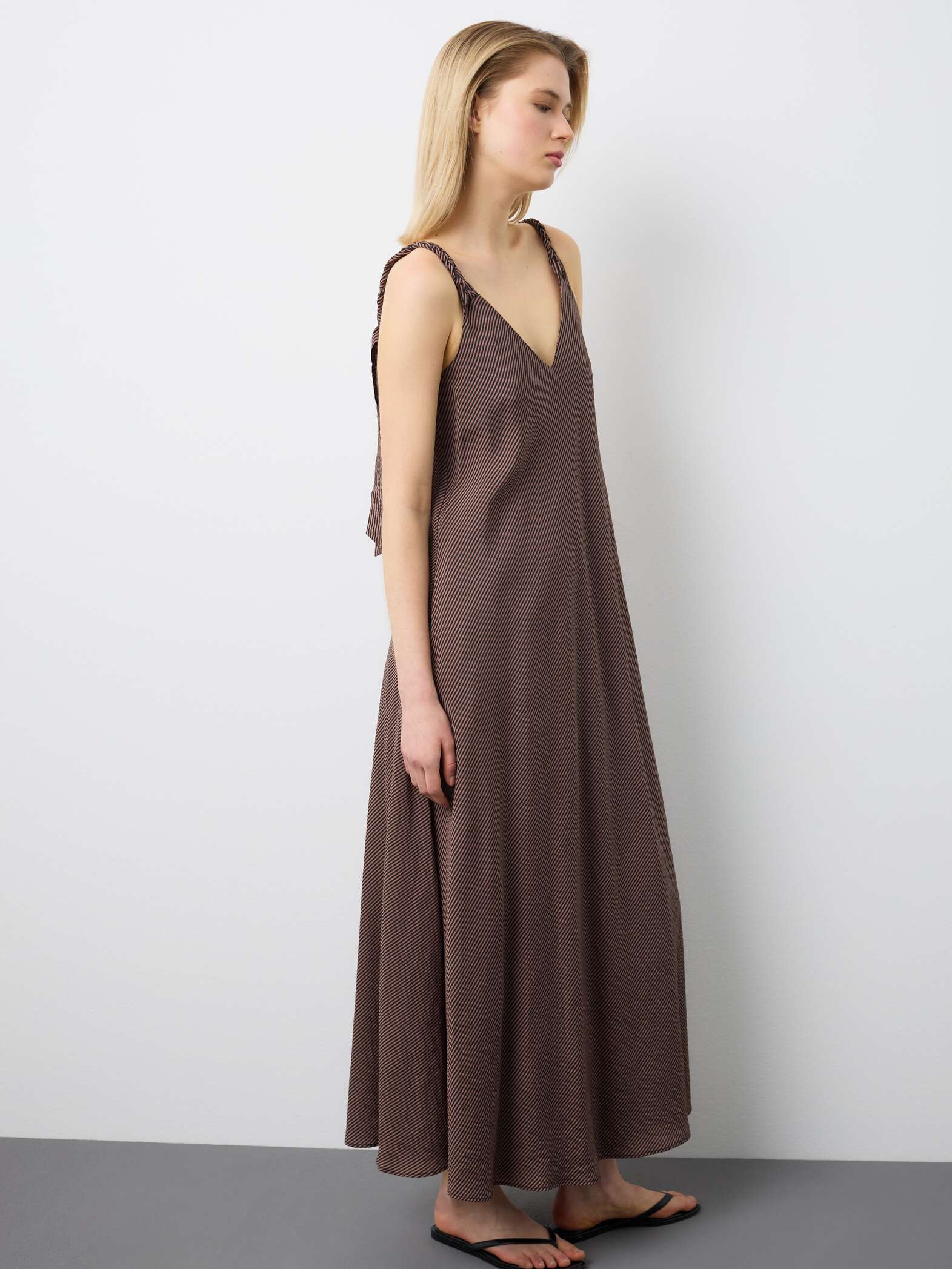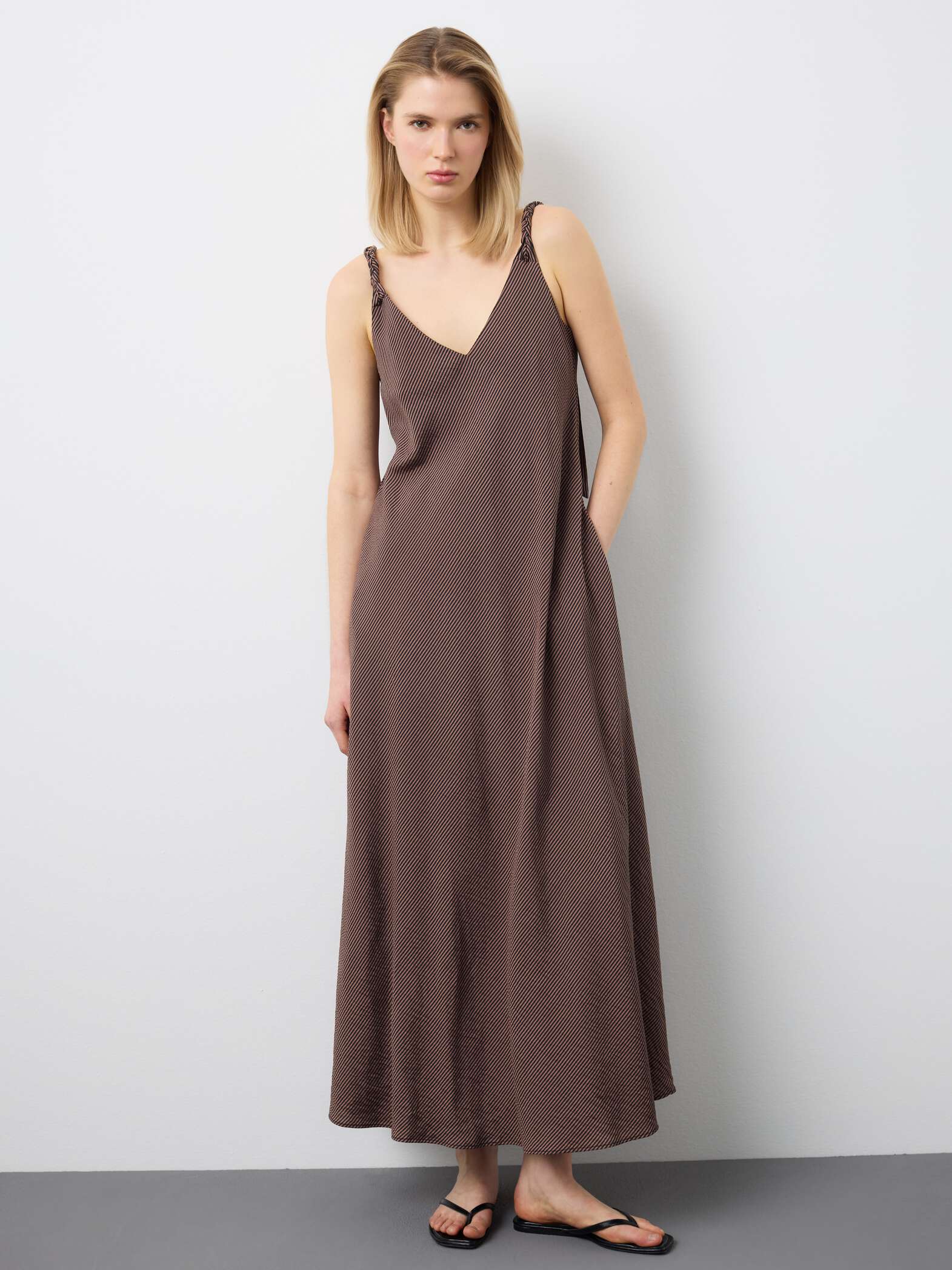 Αυτό το καφέ ριγέ φόρεμα είναι απαραίτητο για κάθε γυναίκα.