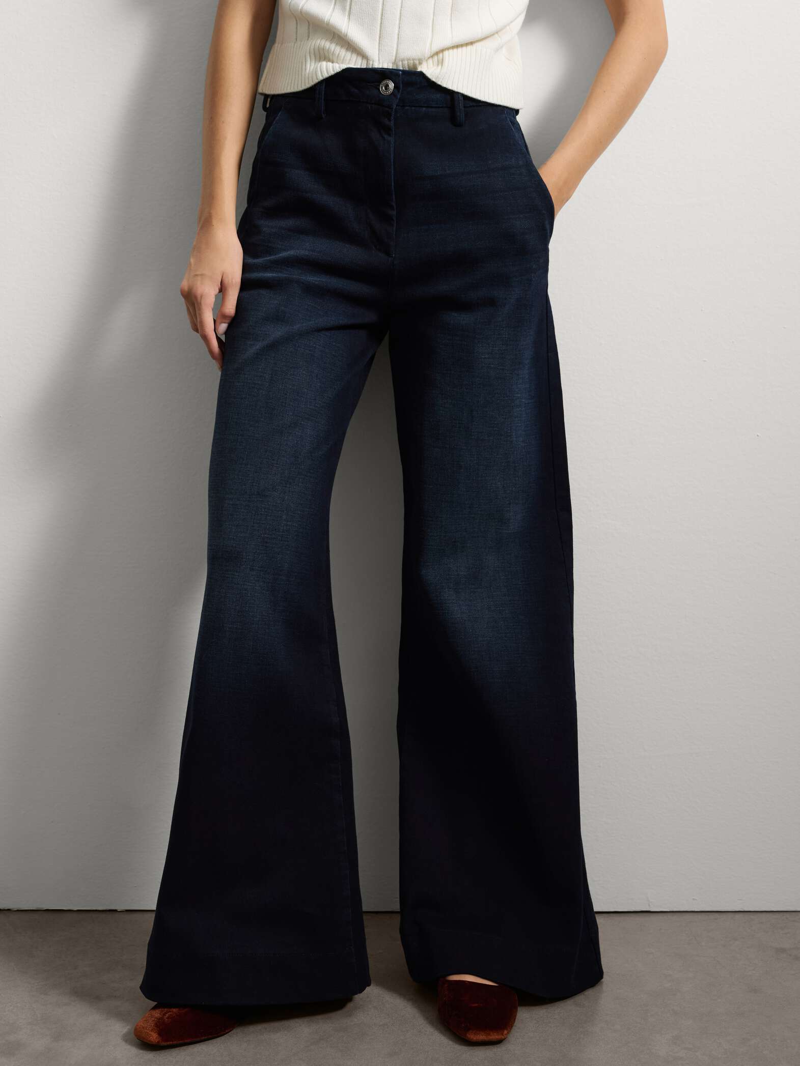 Τα μπλε τζιν με φαρδιά γραμμή είναι απαραίτητα για κάθε γυναίκα.