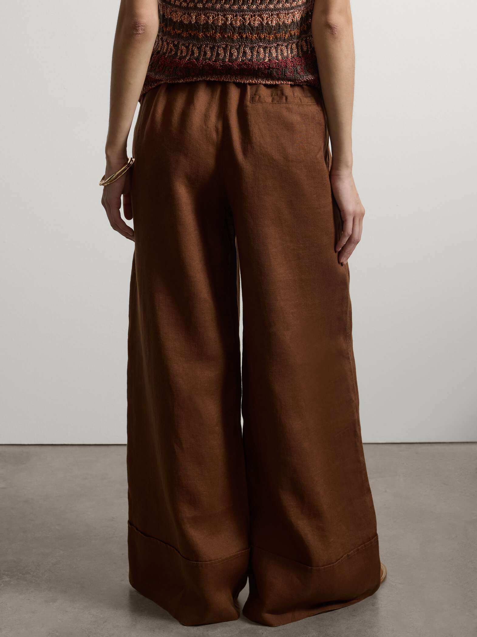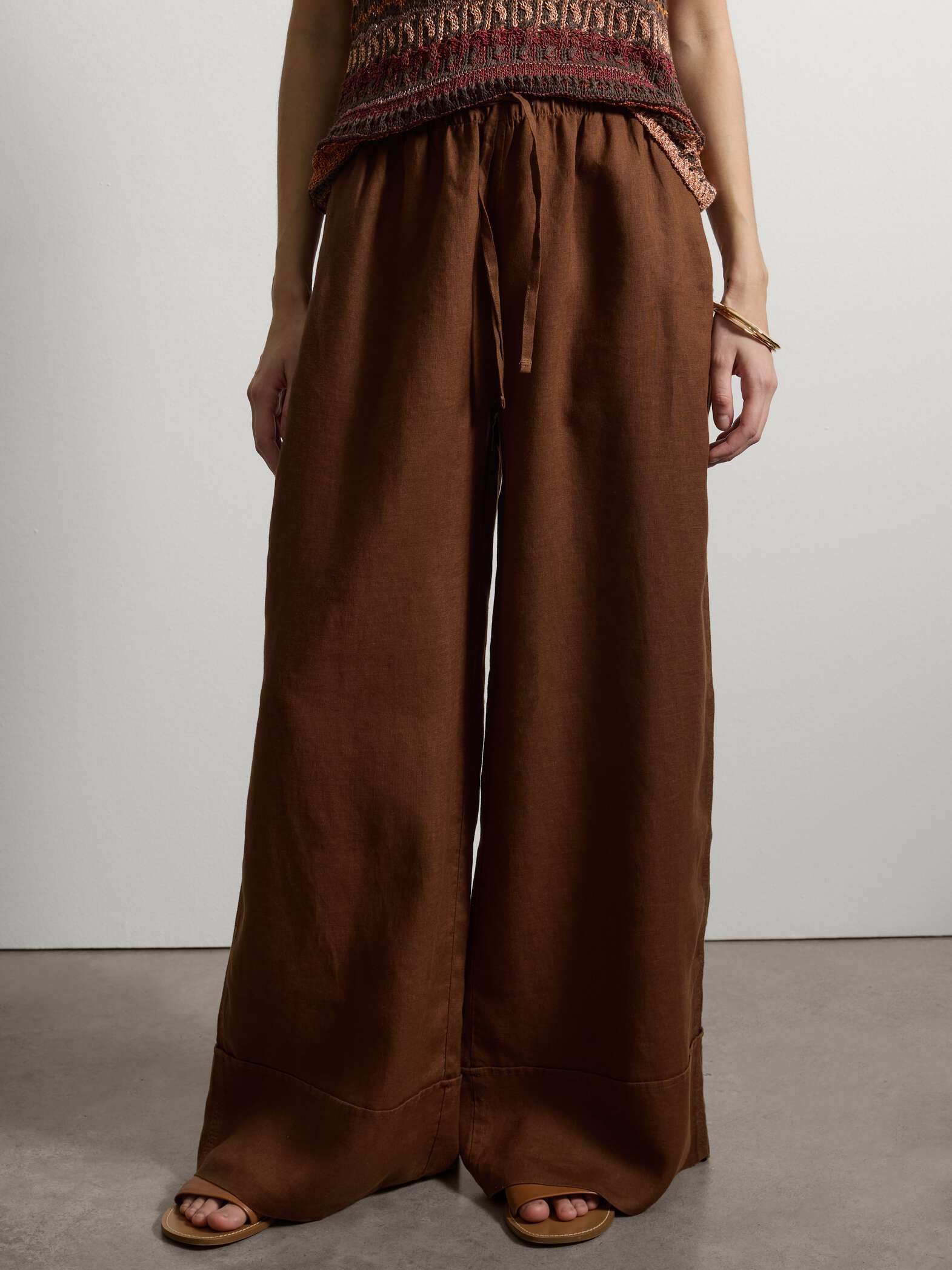 STEFANEL Wide-leg pure linen joggers Brown