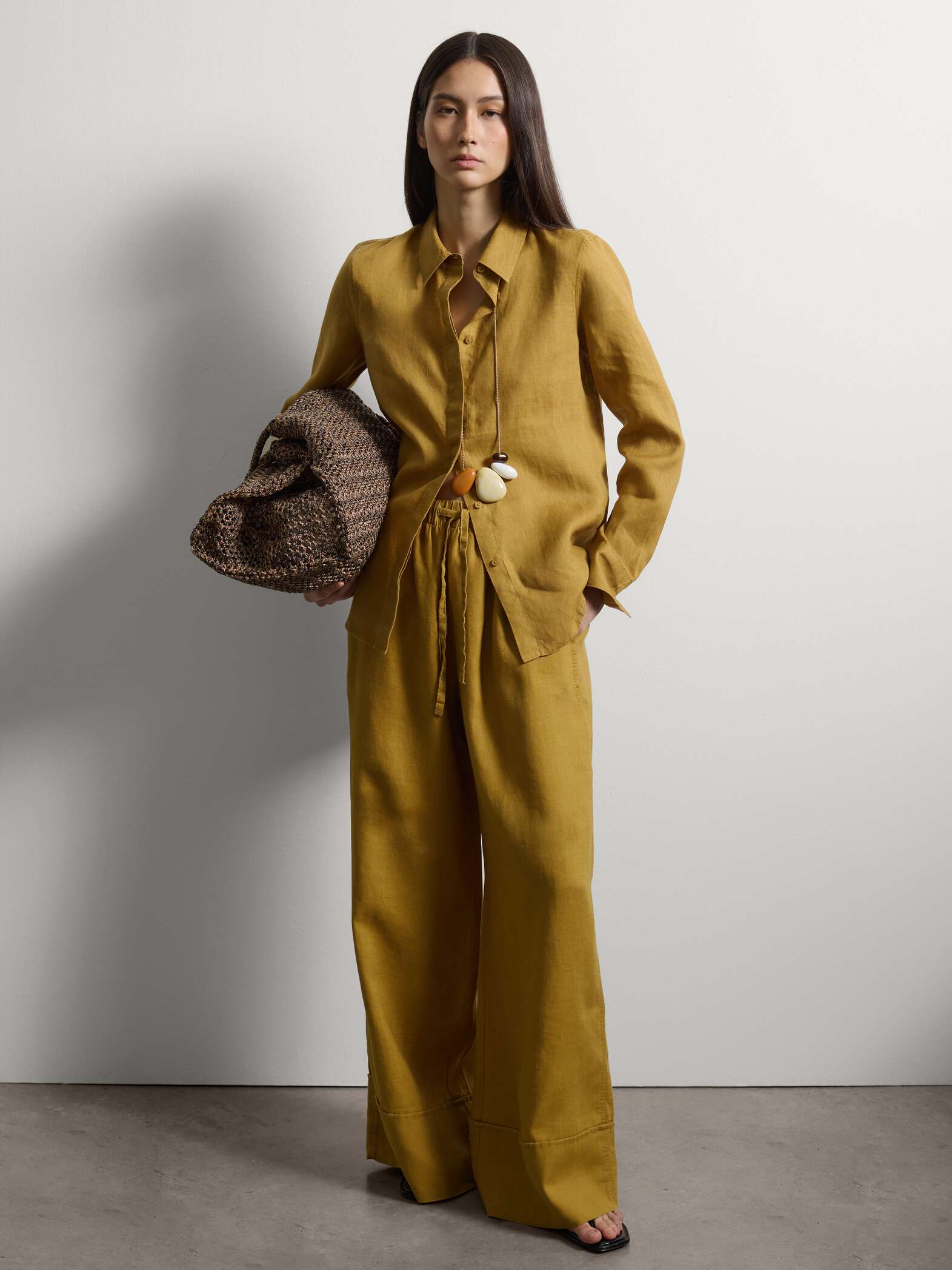 Αυτά τα κίτρινα παντελόνια είναι φτιαγμένα από καθαρό λινό, ιδανικά για την καλοκαιρινή περίοδο.