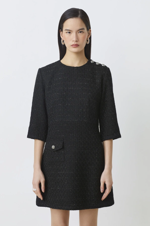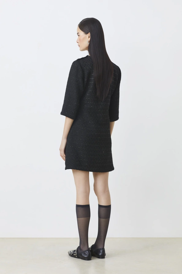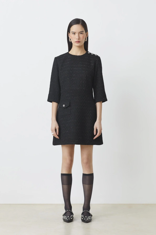 SUNCOO Calvin Recycled tweed short dress Black