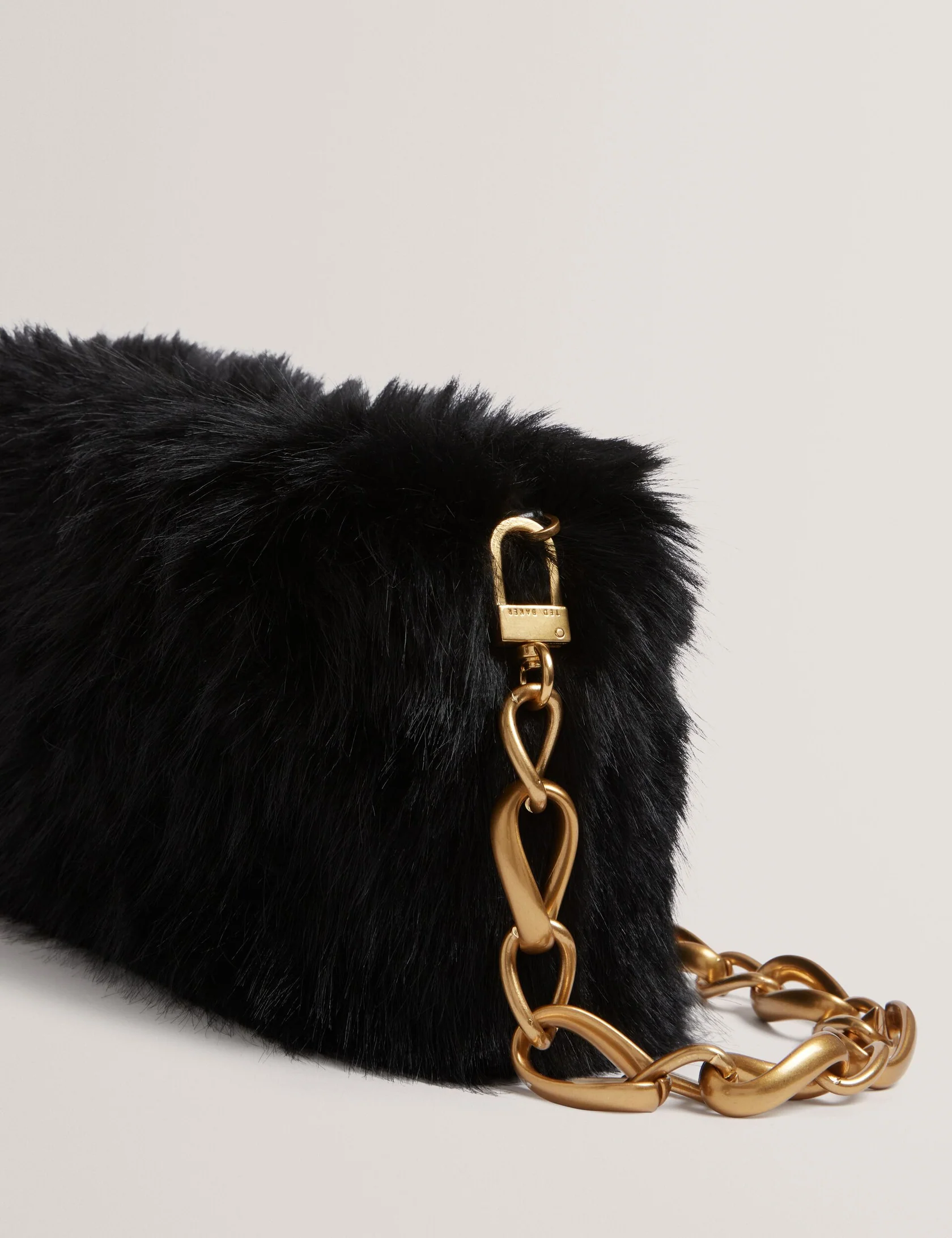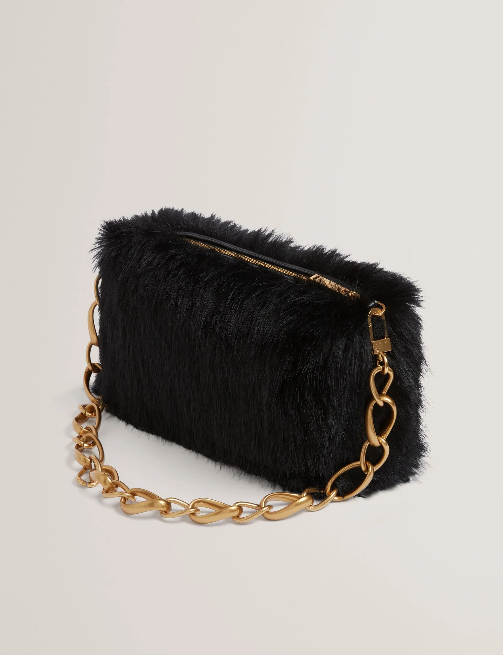TED BAKER Faux Fur Clutch Bag with Chain Strap Black