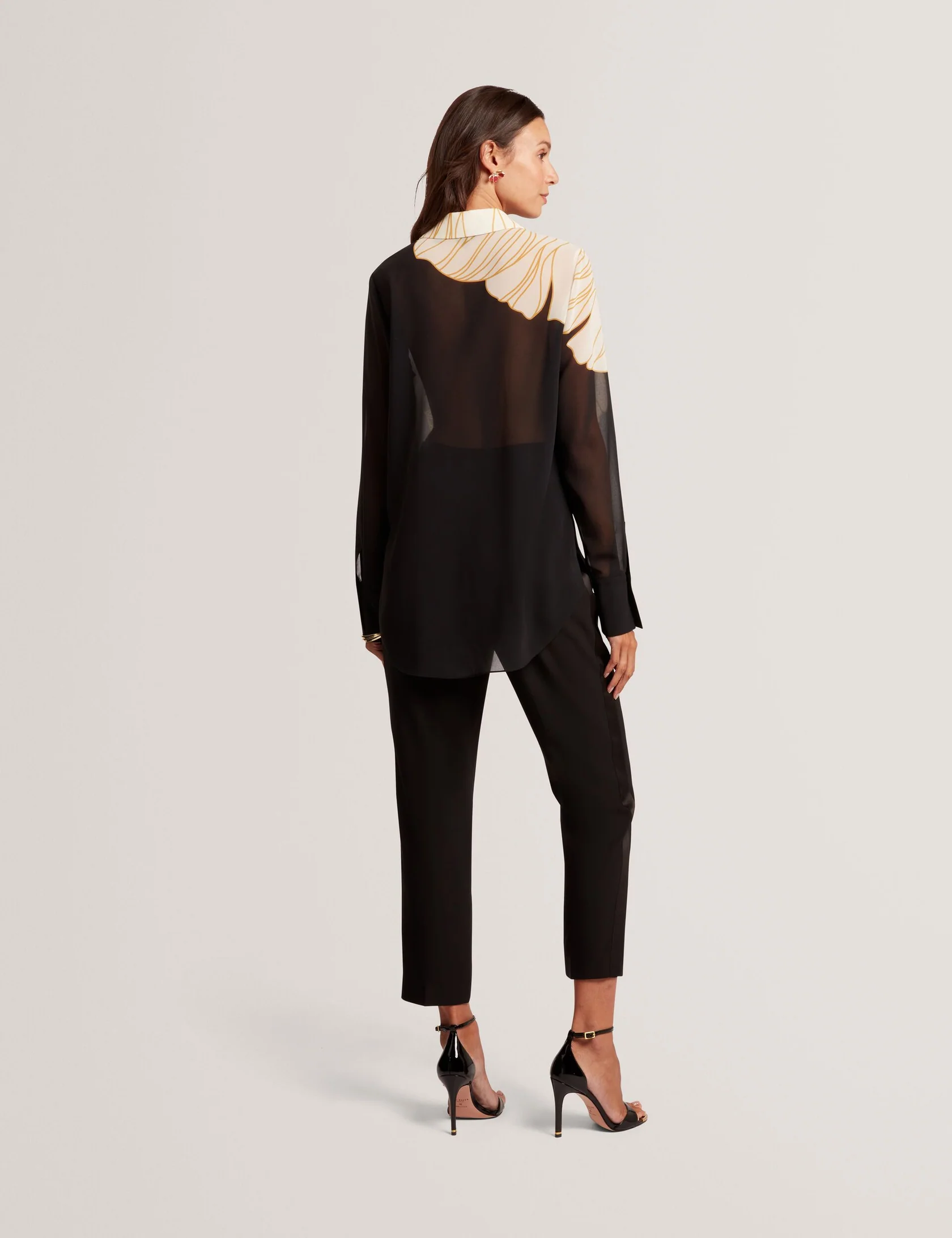 TED BAKER Nouveau Floral Semi-Sheer Longline Shirt Black