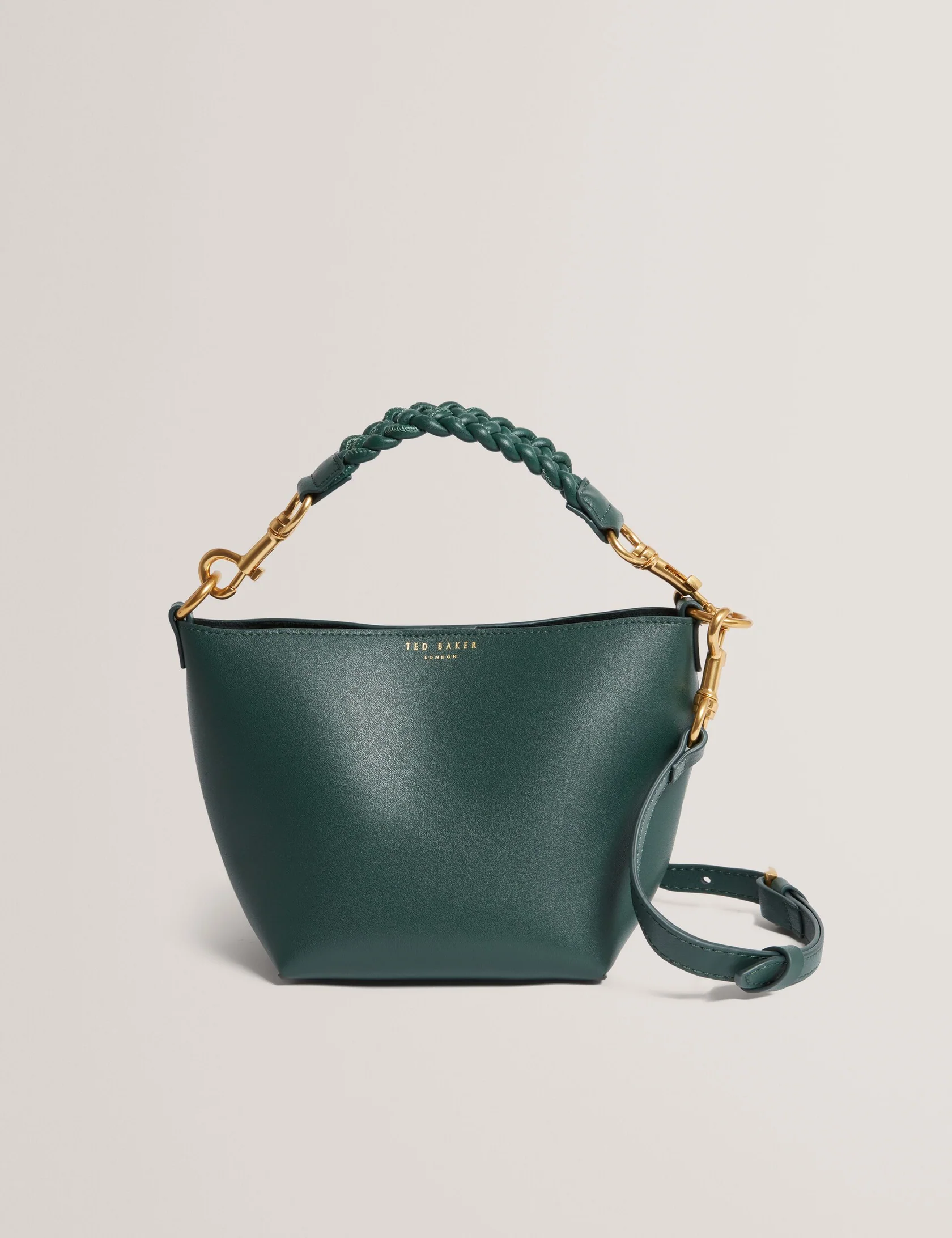 TED BAKER Plaited Handle Small Bucket Tote Bag Green