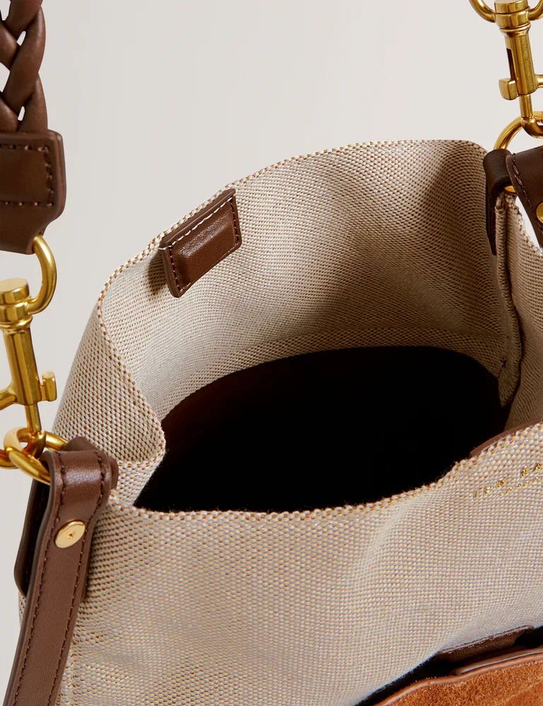 TED BAKER Sorien Woven Handle Medium Bucket Bag Tan