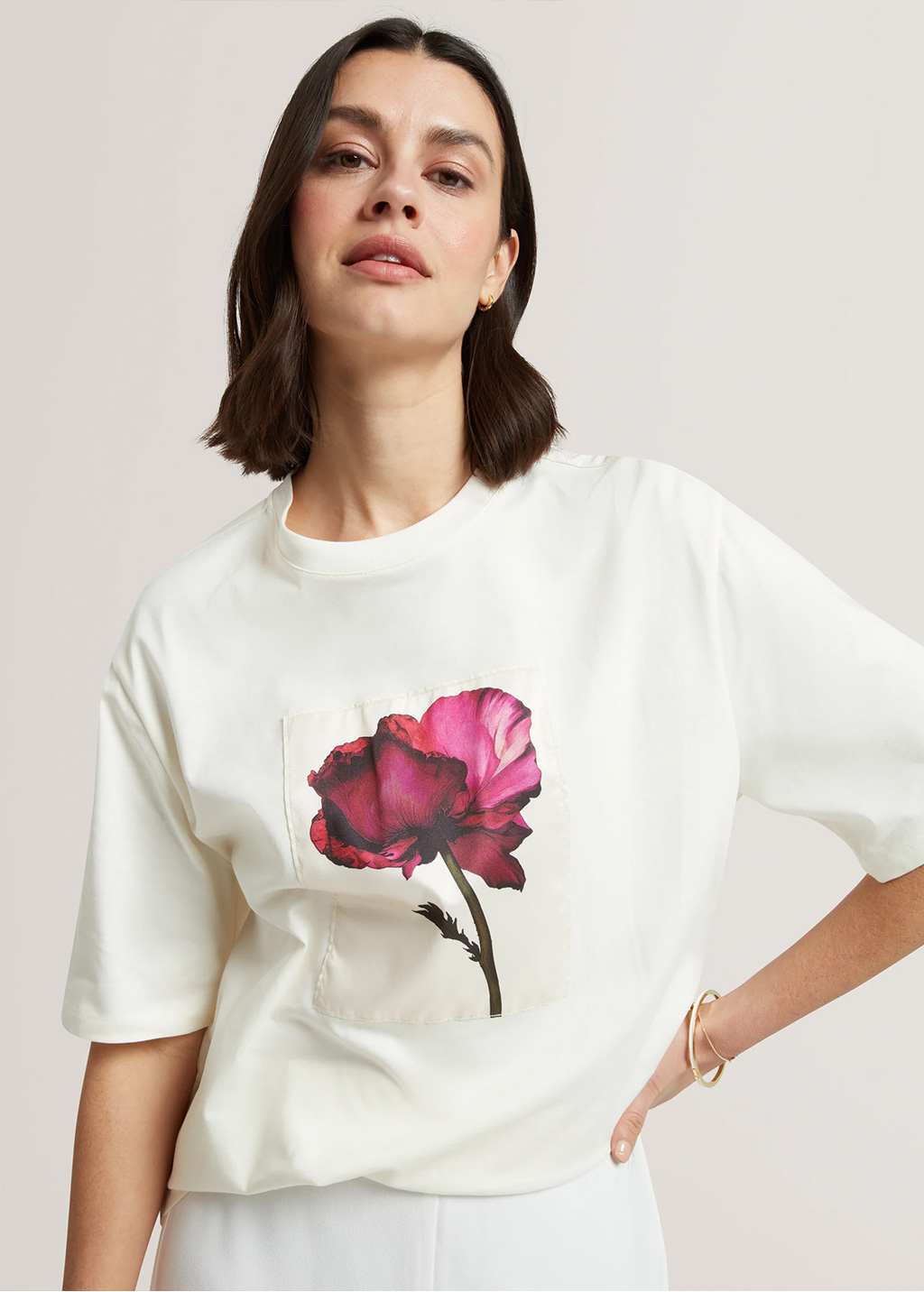 TED BAKER T-shirt With Floral Print Ecru