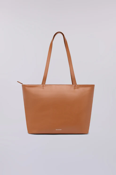 Το διακριτικό οβάλ έμπλαστρο αποτίει φόρο τιμής στο ιστορικό αρχείο της Trussardi, επαναπροσδιορισμένο με ένα κομψό άνοιγμα που αποκαλύπτει το λαγωνικό, σύμβολο κομψότητας και δυναμισμού. Η Society προσφέρει ανθεκτικές, λειτουργικές και διαχρονικές τσάντες, ιδανικές για να σας συνοδεύουν σε κάθε περίσταση. Αυτές οι δημιουργίες ενσαρκώνουν την ουσία της μάρκας, συνδυάζοντας διαχρονικό σχεδιασμό και λειτουργικότητα για να ανταποκριθούν στις απαιτήσεις της σύγχρονης ζωής με στυλ.