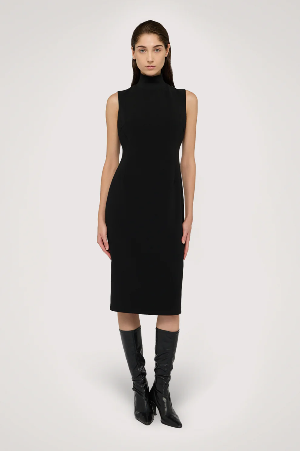 TRUSSARDI Ribbed-collar cady sheath dress Black