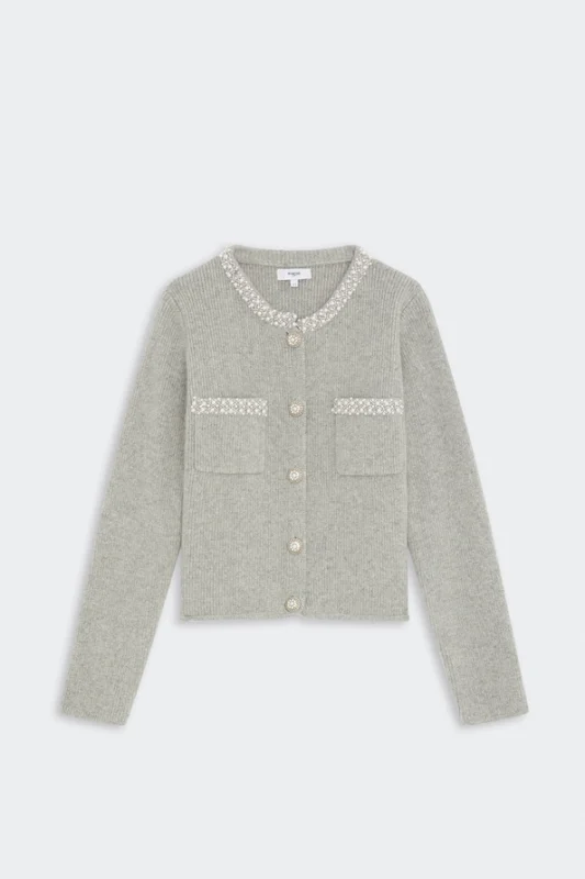 SUNCOO Pearl Cropped jumper with jewelled collar Blue